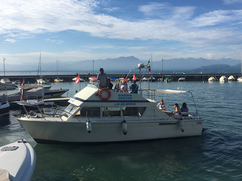 Escursione in barca giornaliera con pranzo a bordo e sosta a Sirmione. Navigazione verso i seguenti punti di interesse: Castello di Lazise, Rocca Di Garda, Villa Canossa, Punta San Vigilio, Baia delle Sirene, Isola del Garda, Isola San biagio, Baia Verde, Parco Naturale Rocca di Manerba, Jamaica Beach Sirmione, Grotte di Catullo. Sosta per bagno.